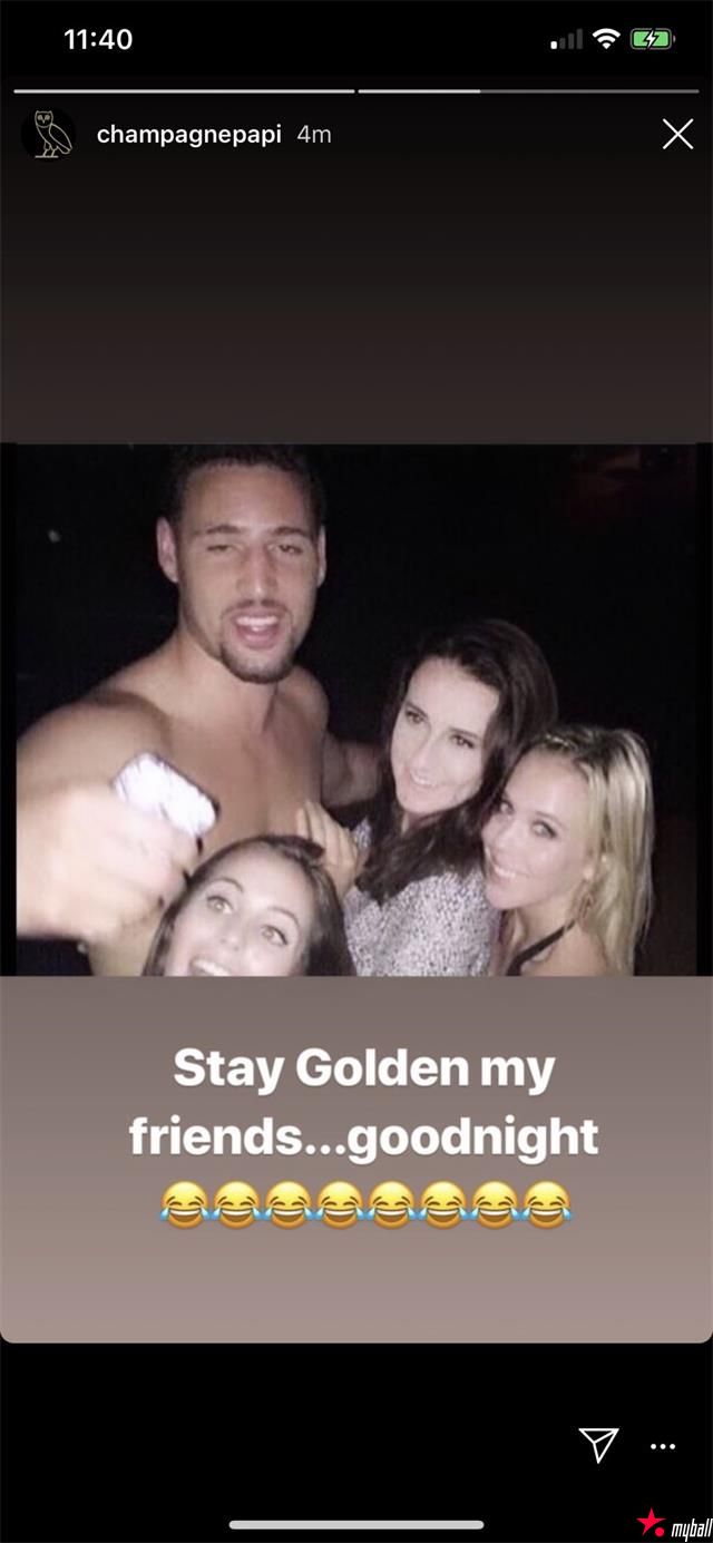 猛龙今天赢了,德雷克赛后第一时间在社交媒体晒出一张克莱被三位美女簇拥的照片,并这样写道:“我的朋友可以继续潇洒了,晚安。”