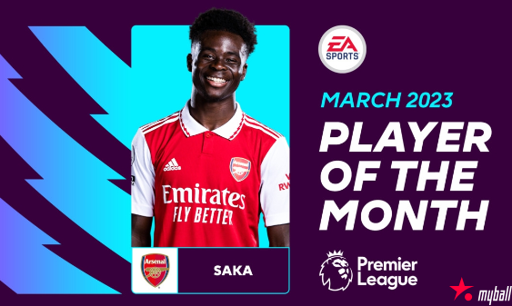 迈博体育 萨卡当选英超3月最佳球员,3球2助随枪手4战全胜 2023-04-01 00:11:34