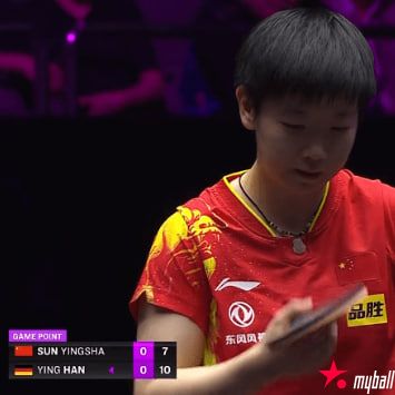 面对削攻结合的韩莹,孙颖莎显然是准备不足,不知道韩莹的下一拍到底是削还是攻。在熟悉韩莹的打法中,孙颖莎以9-11先丢一局。