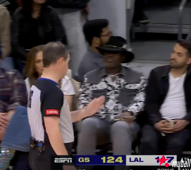 随后,双方跳球,追梦在球砸里夫斯出界,湖人再度挑战。最终,裁判经过长时间判定,认为追梦球砸里夫斯先踩出界了,湖人再度挑战成功,拿回了球权。