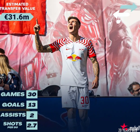红牛集团被广泛流传的人才输送途径培养了于帕梅卡诺、索博斯洛伊和哈兰德等人才。塞斯科通过同样的人才培养渠道迅速崛起。他在支线俱乐部列夫林度过了两个赛季,在萨尔茨堡红牛又度过了两次赛季,然后上赛季转会到德甲莱比锡。塞斯科现在已经连续六场联赛进球,使他本赛季在德甲联赛首秀中的进球数达到13球。当你看到他只首发了16场比赛时,这就更加引人注目了。值得一提的是,他已经追平了哈兰德在德甲首秀中的联赛进球数。欧洲各地的精英球队已经在关注他的进步,但他的状态和持续适应更高水平的能力肯定会在夏天加速他们的追求。