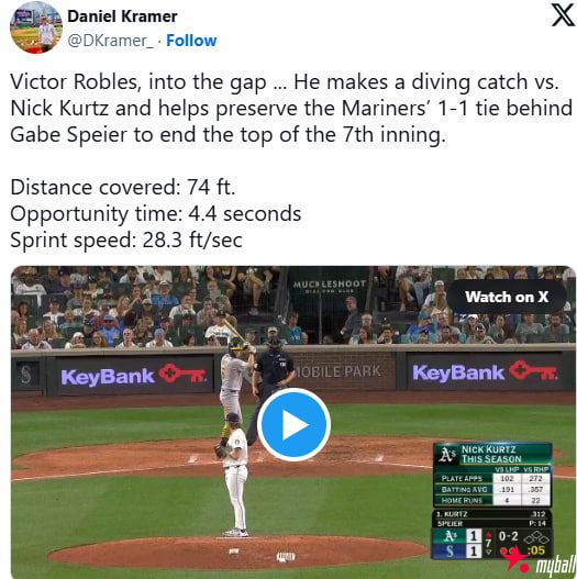 西雅图水手队将外野手维克托·罗伯斯从伤病名单中调出,让他在周六1-2负于运动家队的比赛中担任右外野手(10局)。他对阵左投手杰弗里·斯普林斯,担任第七击球手,回归阵容后4支安打,仅打出1支安打。