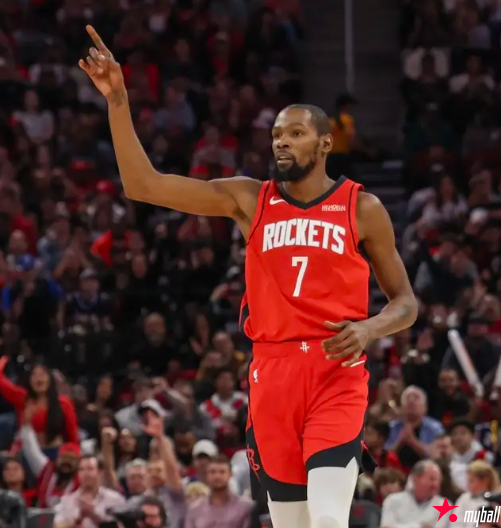 杜兰特场均贡献27.2分,有效投篮命中率高达60.9%。特别是当杜兰特持球遭遇包夹时,他总能为队友创造空位投篮机会,这似乎印证了杜兰特就是火箭队重要拼图的言论。