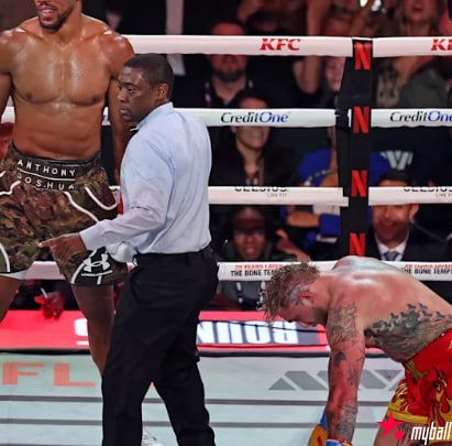 整场比赛的大部分时间里,保罗都在拳台上尽可能快地绕圈移动,竭尽全力避免被约书亚逼到角落或围困在拳台边缘。这原本是个明智的策略,毕竟他比约书亚矮小得多,但最终,他还是败下阵来。