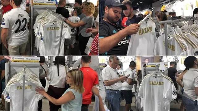 阿扎尔正式亮相皇马,但是在发布会上并没有公布他的球衣号码。跟约维奇一样,阿扎尔只穿上了印有他名字,但没有球衣号码的球衣亮相。《马卡报》表示,阿扎尔的第一件皇马球衣,没有号码。不过,在皇马的伯纳乌商店,球迷可以购买阿扎尔的球衣,一件价格为127欧元,上面印有阿扎尔的名字。当阿扎尔的球衣号码确定之后,球迷可以前往商店补印号码,不收费用。