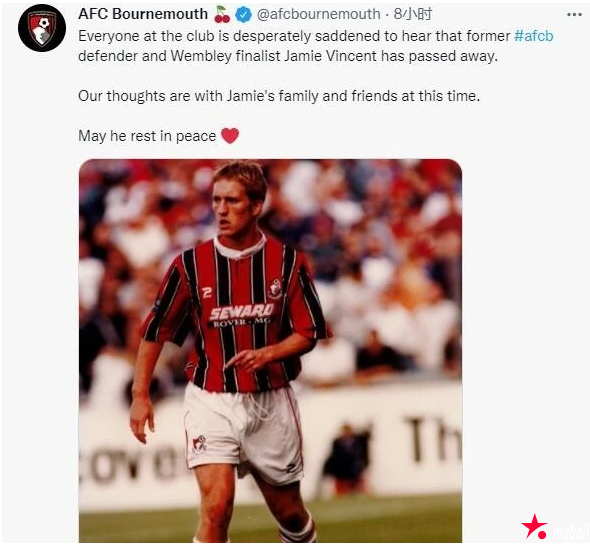 据《镜报》报道,前水晶宫、伯恩茅斯球员杰米-文森特去世,享年46岁。