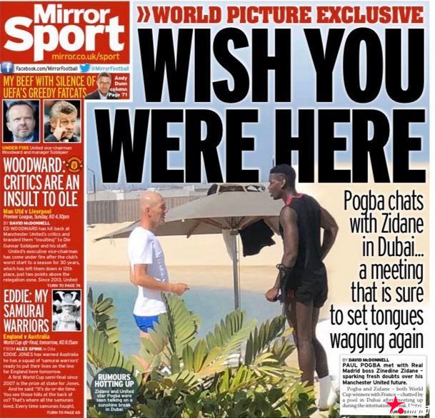 英国媒体《镜报》此前拍到了国家队比赛日期间,博格巴在迪拜养伤时与齐达内会面的照片,据悉两人在泳池旁交谈了10分钟。这也引来了不少转会的猜测。