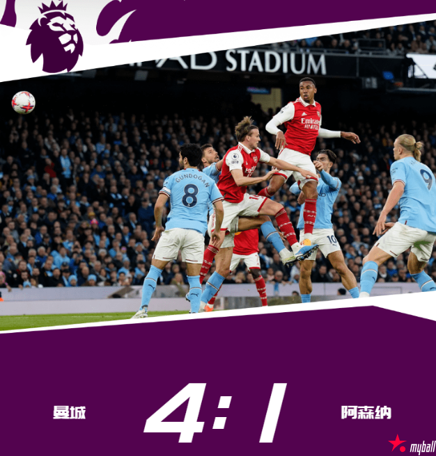 全场比赛结束,曼城主场4-1大胜阿森纳,本赛季各项赛事三杀枪手。蓝月亮在少赛两场的情况下,将和兵工厂之间的积分差距缩小到2分。