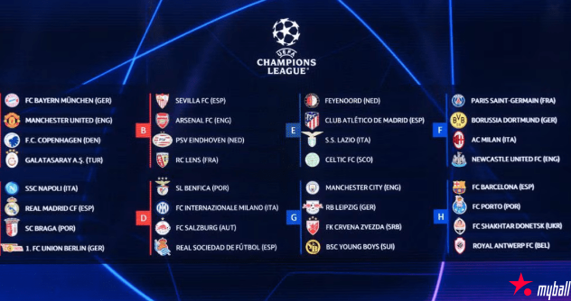 2023-24赛季欧冠小组赛抽签结果: