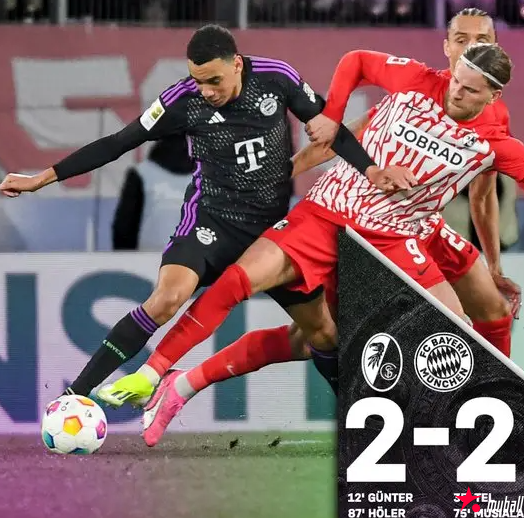 第87分钟,主队弗赖堡界外球“手榴弹”战术奏效,西尔迪利亚大力手抛球掷入禁区,中路的霍勒跟进一挑后转身抽射破门,拜仁最后时刻被绝平,2-2!