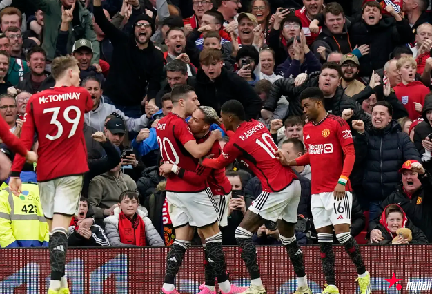 第9分钟曼联率先进球,快发任意球后球来到前场左侧拉什福德脚下,尝试突破失误后直塞禁区肋部,加纳乔高速插上禁区内小角度打门被凯莱赫封堵,麦克托米奈门前补射破门,曼联队1-0领先。