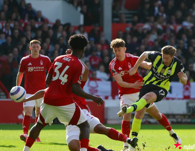 第25分钟,B席右路虚晃后传球,尼科-冈萨雷斯直接射门打上看台。第31分钟,格瓦迪奥尔和福登进行配合,后者左脚射门被森林球员挡出。
