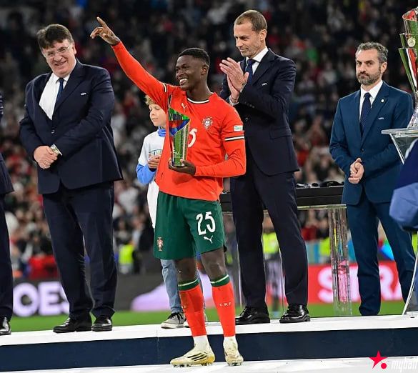 2025年6月9日讯:今夜的慕尼黑安联球场,见证了葡萄牙队夺得队史第二个欧国联冠军,同时这也是努诺-门德斯加冕世界第一左后卫的关键一役:此前他在欧冠赛场上“封杀”了萨拉赫和萨卡两位世界级边锋,而今年努诺-门德斯用出色的表现,完全限制亚马尔的发挥,这为葡萄牙队最终夺冠奠定了基础。为了表彰努诺-门德斯的精彩发挥,欧足联在赛后给他颁发了欧国联决赛最佳球员奖杯和欧国联决赛圈最佳球员奖杯。