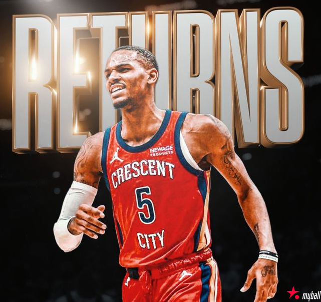 “他快回来了,”鹈鹕临时主帅博雷戈在周五训练后说,“我认为未来一周内,他就会回到NBA赛场,这太不可思议了。”穆雷是鹈鹕在2024年休赛期从老鹰交易得到的球员,他在新奥尔良的开局颇为坎坷:2024-25赛季揭幕战就左手骨折,缺席17场比赛;几个月后又遭遇跟腱撕裂。