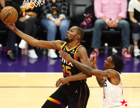 但杜兰特开始发力接管比赛,他连续利用中距离投篮打成进攻,2分00秒已经将分差缩小至5分,中场前30.1秒保罗撤步中投打进,太阳将分差缩小到只有3分,而布克的压哨三分成功在半场结束时让两队回到同一起跑线。