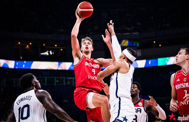 北京时间9月8日晚,男篮世界杯半决赛在马尼拉举行,对阵双方为本届两大夺冠热门美国队和德国队。经过4节比赛鏖战,德国男篮爆冷以113-111击败美国男篮,晋级决赛会师塞尔维亚,这是德国男篮历史首次杀进世界杯决赛。