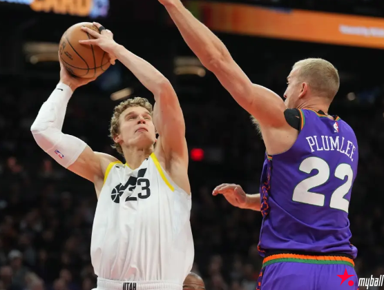 爵士队首发:劳里-马尔卡宁、科林-塞克斯顿、沃克-凯斯勒、以赛亚-科利尔、米卡-波特