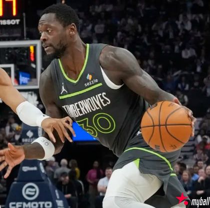 森林狼队首发:朱利叶斯-兰德尔、安东尼-爱德华兹、鲁迪-戈贝尔、贾登-麦克丹尼尔斯、迈克-康利