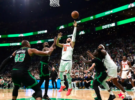 尼克斯队首发:约什-哈特、杰伦-布伦森、卡尔-安东尼-唐斯、米卡尔-布里奇斯、OG-阿奴诺比