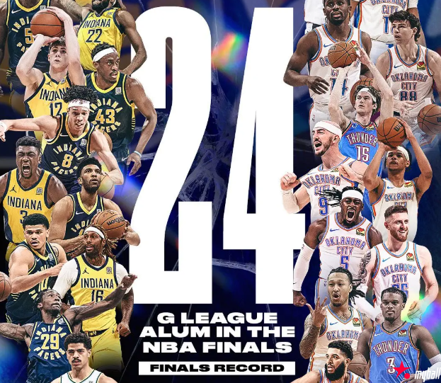 据统计,步行者和雷霆两队共有24名球员曾在G联赛打球,两边各12人,创NBA总决赛历史纪录。