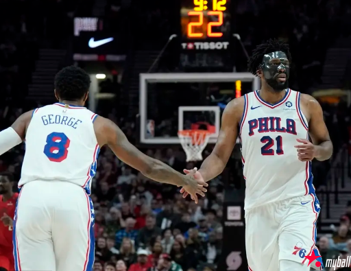 2024-25赛季,乔治出战41场,场均16.2分5.3篮板4.3助攻;恩比德出战19场,场均23.8分8.2篮板4.5助攻。