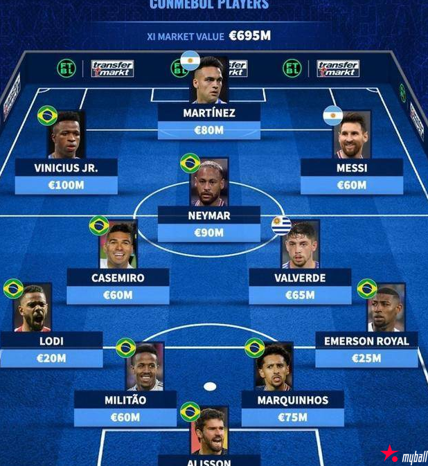 迈博体育 6.95亿欧!南美足坛最贵阵容诞生!梅西内少入围 2022-01-29 05:17:29