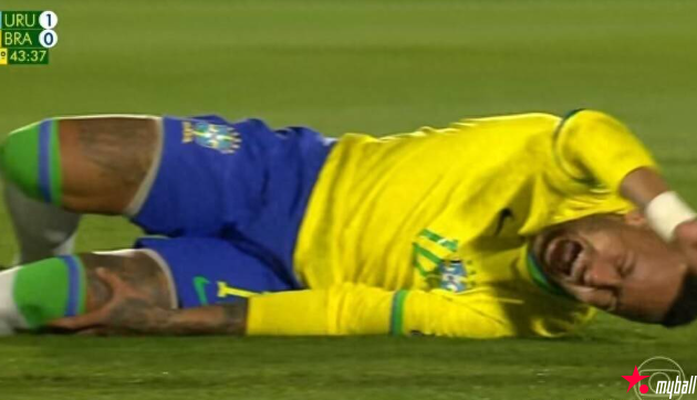 巴西客场挑战乌拉圭队,上半场比赛巴西队先丢球0-1落后,但是比比分落后更悲伤的是内马尔受伤了。上半场补时阶段,内马尔与乌拉圭球员德拉克鲁斯相撞,左膝扭伤。内马尔无法坚持比赛被担架抬离球场,他当场痛哭流泪。