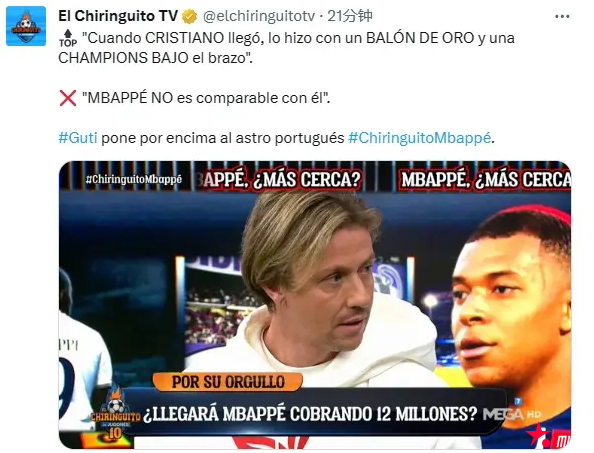近日,皇马名宿古蒂在节目中谈到了姆巴佩与皇马的传闻。